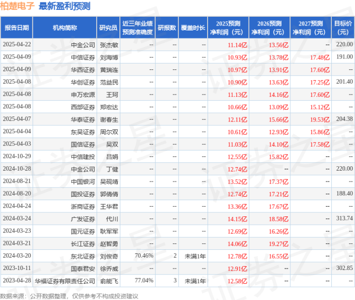 证券之星数据中心根据近三年发布的研报数据计算,华福证券有限责任公司俞能飞研究员团队对该股研究较为深入,近三年预测准确度均值为77.04%,其预测2025年度归属净利润为盈利12.58亿,根据现价换算的预测PE为22.06。